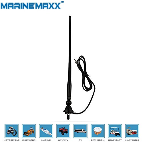 This marine antenna from MarineMaxx offers you excellent performance, long-lasting durability, and quite a few mounting options. The flexible mast helps it resist bracing winds, even as the corrosion-resistant rubber exterior ensures that it may not succumb to salt and spray. Way to a 180-degree swivel base and a 52″ cable, you’ll mount the antenna in a number of locations on almost any boat, Heavyduty, ATV, UTV environment. Waterproof Rubber Duck Dipole Flexible Marine FM AM Radio Antenna for Boat Car