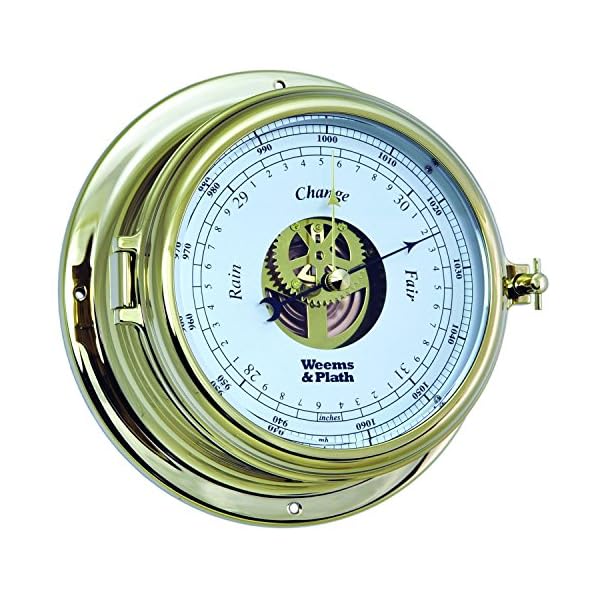 Light, strong and durable, the Endurance II Open Dial Barometer with brass finish is an holosteric or aneroid type which measures atmospheric pressures mechanically without the use of liquids. The movement is temperature compensated, fully adjustable with inch and millibar scales and is calibrated for altitudes to 3,500 feet above sea level. Maintenance free, ultra-hard protective coating Guaranteed not to tarnish or scratch Weather resistant Traditional porthole front opening bezel Beveled glass crystal Mounting methods for boat or shore Single wood base in black or mahogany finish available separately (135SB & 135SM) Lifetime warranty on finish and movement Available in 3 sizes and 2 finishes.