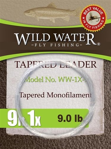 Wild Water Fly Fishing Tapered Leader-1X, 9′, 3 pack