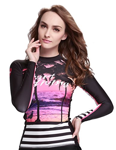Women’s UV Sun Protection 50+ Basic Skins Long-Sleeve Rashguard Top-Digital40