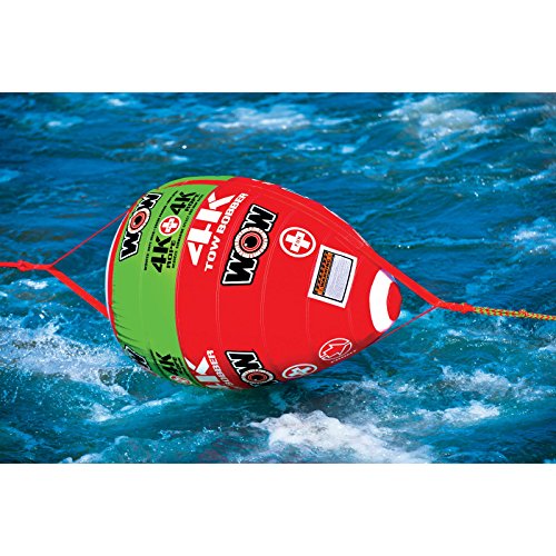 Improve your towing experience with the World of Watersports Tow Bobber. This indispensable accessory includes an adjustable segmented rope with three sections of different lengths, letting you choose the length that is right for your boat length (60-feet maximum length). A wide-strapped, reinforced hitch system means that you can pair this with all kinds of vehicles and water craft. The bobber itself floats on a heavy-duty PVC bladder and is covered in bright red/green nylon, keeping the rope visible, preventing tangles, and reducing stress. This allows for quicker launches, increased fuel economy, and an overall safer time at the water.   Founded in 2010 by Leroy Peterson, WOW is now the leader in state of the art water sport accessories. Committed to quality construction and innovative ideas, WOW has pioneered all kinds of ski tubes and accessories designed to put the functionality in your summer water fun. WOW has developed a whole new generation of towables which can be exciting, protected, and reasonably priced. Dimensions: 38L x 27W x 27H in.. Nylon & PVC material for strength. Adjustable segmented rope system, 3 sections. Custom wide-strapped reinforced tow system. Designed to tow 1-4 person towables. Manufacturer’s 1-year warranty against defects.