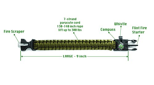 MULTI-FUNCTIONAL GADGET: With our 4 in 1 Survival Bracelet, You’ll be able to all the time be prepared. Set traps with the Paracord rope, secure your items or use it as restrains, light a fire for cooking and warming yourself up, find your way with the compass and have an ever-important scraper/ knife at your disposal. Small, compact and packed with everything you wish to have, this tactical bracelet is a must-have for every Outdoorsy person out there!