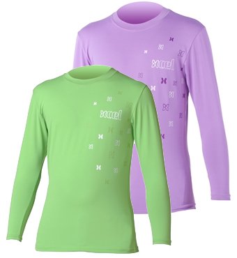 XCEL rashguards offer the ultimate in protection, fit, and functionality. Crafted from super soft and stretchy 6oz lycra spandex, these stylish rashguards feel great against the skin and are quick drying with anti-microbial properties to keep the stink away. The UPF Rating (Ultraviolet Protection Factor) is 40+ for maximum sun protection. A boardshort connector on the front allows you to attach to your trunks to keep the top from bunching up. Please note that rash guards do not keep you warm. They are worn alone -or- under a wetsuit to prevent chafing, rash, abrasion, and sunburn. Sizing note: This product is a “regular” rash guard fit, which means it fits tightly for performance. Order normal t-shirt size for a snug fit. Order one size up if a more relaxed fit is preferred.