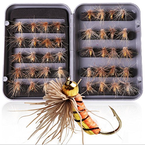 XUNMA Fly Fishing Flies 40 Gold headed NYMPHS with Box ,Especially for Trout