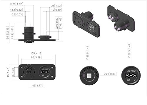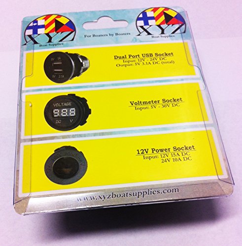 XYZ Boat Supplies Panel Voltmeter with 12v Power Supply Socket for Boat / Rv / Car / Motor-home – External Mount