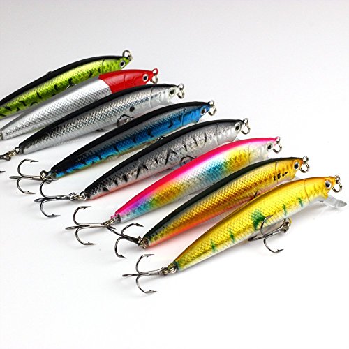 The bright-color minnow fishing lure with 3D eyes create life-like smooth and rapid diving action actions to attract big fishes in water.