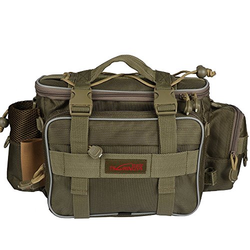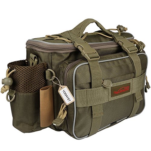 YOGAYET fishing tackle bag is made of water-resistant 600D high density nylon fabrics, multiple storage compartments and exterior pockets, designed for outdoor sports.