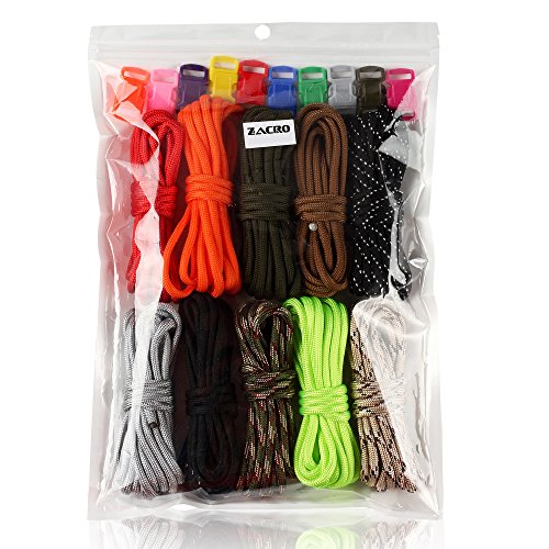Zacro paracord combo kits are great for individuals who can’t make a decision on color selection. Our experts have put together a great variety of combo kits so that you can get began on your paracord projects. Each and every kit includes 10 different colors for a total of 100 feet. Our paracord has a 550 pound test rating and is great for for camping, hiking, military, survival or any out of doors adventure! But even so, we also offer 10 free buckles gifts.