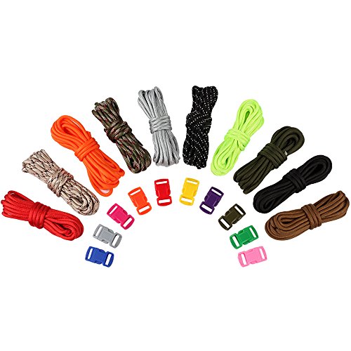 Zacro 400lb Survival Paracord Combo Crafting Kits in 10ft in 10 Colors with Pack of 10 Buckles