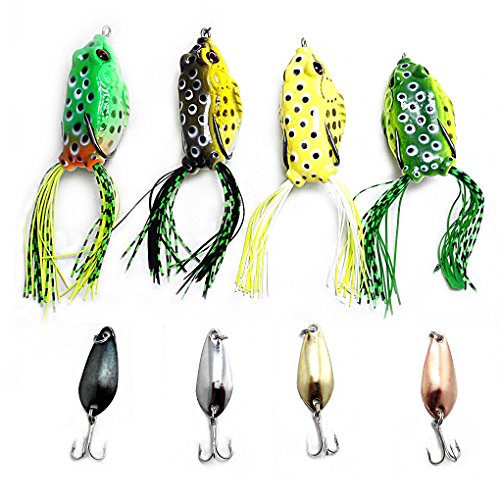 Super Value Package, 4sets frog soft lures(12g) + 4sets spoon crank bait lures(4g) suitable for freshwater lake,river,stream shallow