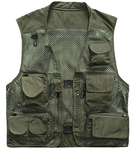 ZSHOW Men’s Outdoor Mesh Fishing Vest is lightweight, washable and packable. Chest buckle help you to wear and take off the vest more quickly. Equipped with D-rings and hook, you can use them to hang water bottles, flashlight, interphone and other small items.