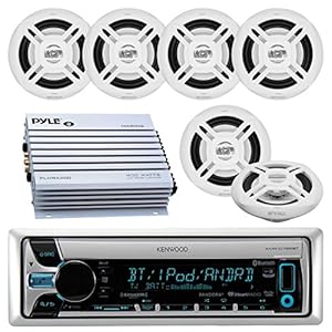 New Kenwood Marine Boat Bluetooth CD USB MP3 Radio Stereo + 6X Speakers, 400 Watt Marine Amplifier Amp