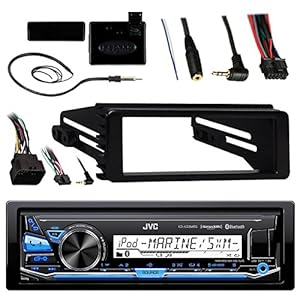 PACKAGE BUNDLE INCLUDES: 1 JVC KDX33MBS Bluetooth Marine Boat Yacht Outdoor USB AUX AM/FM Radio Receiver + 1 Metra 99-9600 Single DIN Dash Kit For Cars And Motorcycle Bikes + 1 Metra Axxess ASWC-1 Universal Handle Bar Control Adapter + 1 Enrock Wired Antenna For Better Receptions.