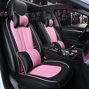 YMY PU Leather Car Seat Cover Cushions Front Rear Full Set 11 pcs Suitable for year round use , pink
